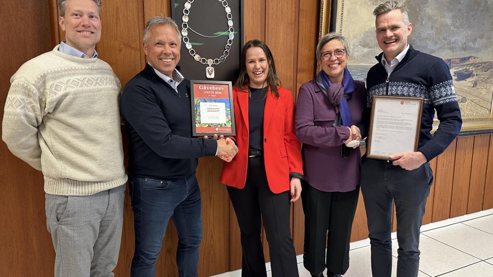 Gåve til Gamlekinoen Tysdag 17. februar fekk Voss herad ved ordførar Tonje Såkvitne besøk av Voss sparebank ved Jørund Rong og Sparebankstiftinga Hardanger ved Kjetil Widd...