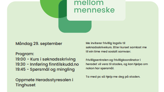Kurs i søknadsskriving for frivillig lagsliv! Saman med Voss frivilligsentral inviterer Voss herad frivillig lagsliv til kurs i søknadsskriving og informasjon om tilskotsportalen finntilskudd.no m...