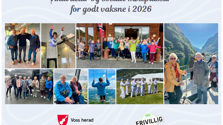 Aktivitetar og sosiale møteplassar for godt vaksne 2026 No er det kome ny kalendar med oversikt over aktivitetar og møteplassar for godt vaksne 2026. Du finn kalendaren i innbyggjartorget på Tinghuset og på ...