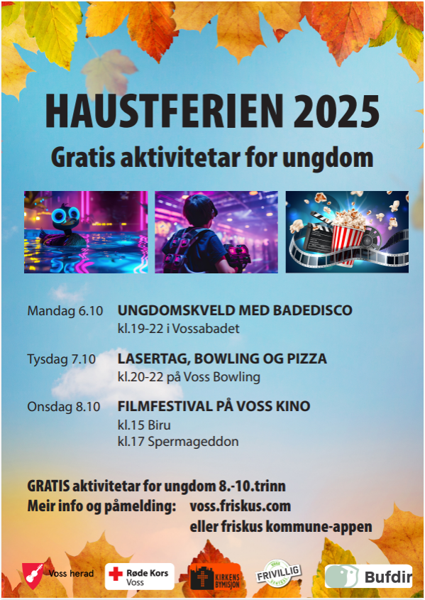 Måndag, tysdag og onsdag er det gratis aktivitetar for ungdom på 8.-10. trinn i Voss herad.