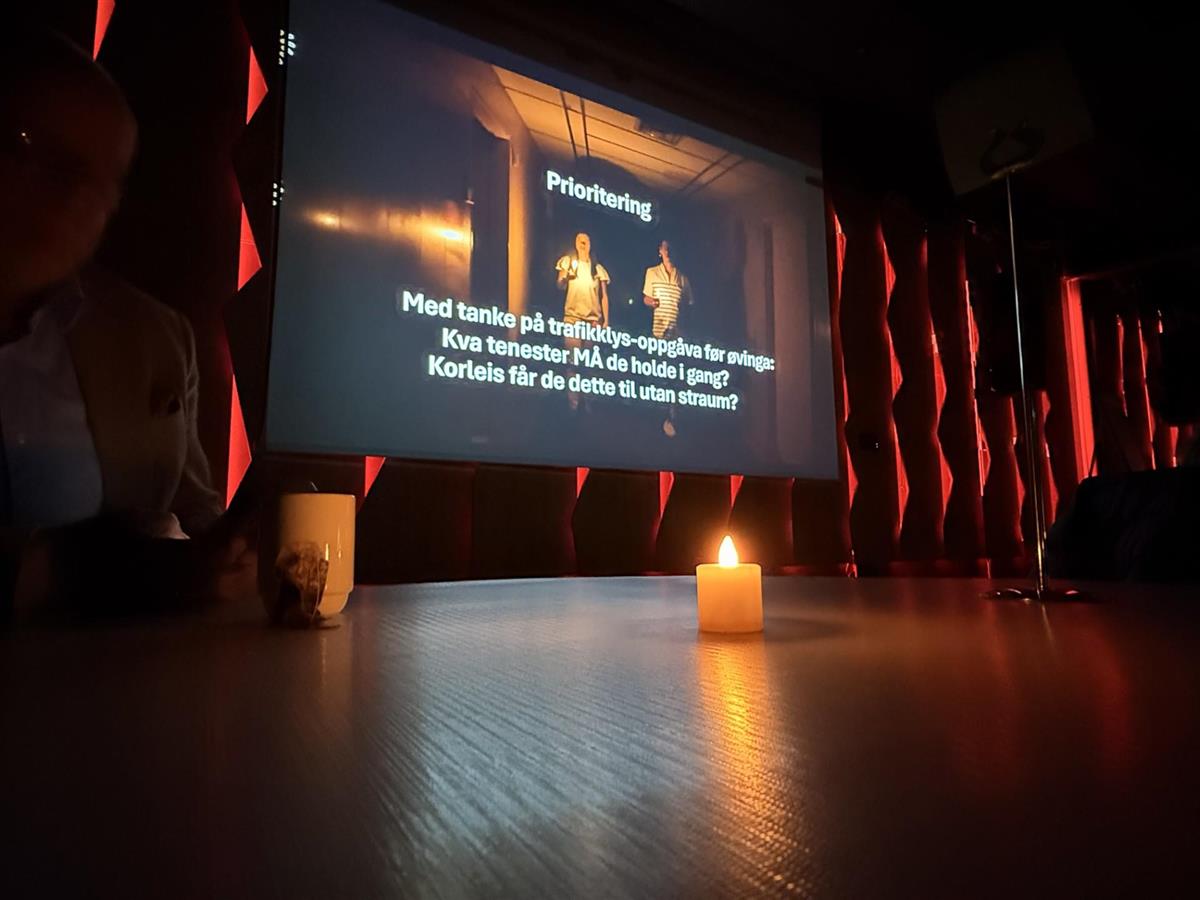 Til overrasking for dei fleste gjekk samlinga over til øvinga Bekmørkt, som handla om korleis me skal handtera ei hending der straumen vert vekke over lengre tid.